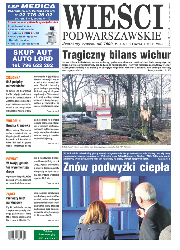 Wieści Podwarszawskie niezależny tygodnik lokalny, obszar powiat wołomiński, tematyka lokalna informacyjna, społeczno - kulturalna, sport, rozrywka, reklamy, ogłoszenia drobne. Ukazuje się w środy.