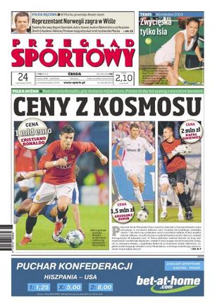 Real Madryt zapowiedział, że sprzeda Cristiano Ronaldo za minimum 1 mld euro; Agnieszka Radwańska pewnie wygrała z Hiszpanką Martinez Sanchez i awansowała do II rundy Wimbledonu; wielkoszlemowy ranking sióstr Radwańskich; Markowi Plawdze, rekordziście Polski w biegu na 400 m, znowu dokucza kontuzja prawej stopy; wywiad z Willym Rampfem, szefem inżynierów BMW Sauber.