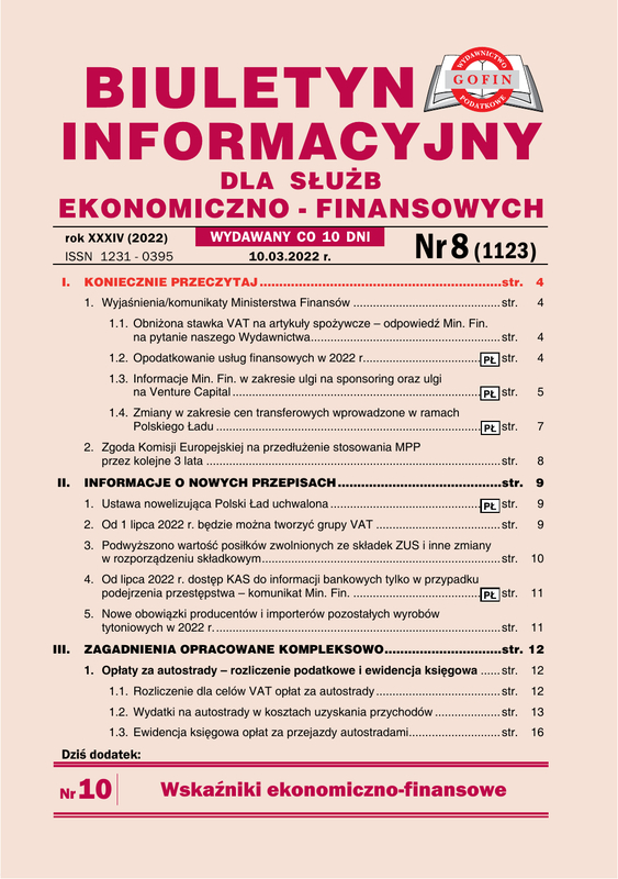 e-Kiosk.pl - Biuletyn Informacyjny dla Służb Ekonomiczno-Finansowych 8/2022
