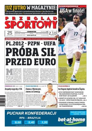 Wewnętrzne rozgrywki spółki pl.2012 doprowadziły do nagłej wizyty przedstawiciela UEFA; jeśli Sebastian Przyrowski nie przedłuży dziś umowy z klubem, to trafi na listę transferową; wywiad z Marcinem Mięcielem; prezes Furtok podał się do dymisji, ale nadal jest najaktywniejszy w rozmowach z przyszłym sponsorem; od przyszłego roku piłkarze w Anglii będą musieli oddawać aż połowę pensji do urzędu skarbowego; w rywalizacji kobiet pozostała nam już tylko Agnieszka Radwańska; groźba rozłamu w Formule 1 została zażegnana; wywiad z Michałem Bębenkiem.