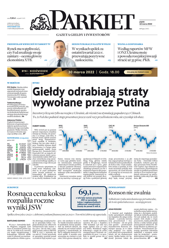 Największy w Polsce newsroom gospodarczy zbiera, analizuje i zgłębia dla Państwa najważniejsze informacje ze świata finansów. Codzienne wydanie „Parkietu”, sześć dni w tygodniu, to kilkadziesiąt artykułów o emitentach, instytucjach finansowych, gospodarce. To również opinie, felietony i wywiady z najważniejszymi ludźmi krajowej i globalnej finansjery.