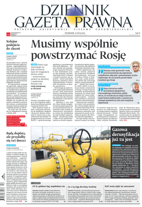 Gazetę wzbogacają praktyczne dodatki dla specjalistów, niedostępne w kioskach: Księgowość i Podatki, Rachunkowość i Audyt, Firma i Prawo, Samorząd i Administracja, Prawnik, Kadry i Płace, Ubezpieczenia i Świadczenia. NOWOŚĆ 2021 r. dodatki Biuro Rachunkowe i Księgowość Budżetowa (dostępne raz w miesiącu). Dodatkowo publikujemy wyjątkowo cenione przez Czytelników specjalne dodatki dotyczące najważniejszych zmian, nowych rozwiązań, na gorąco odpowiadamy na pytania. Piszemy o pracy zdalnej, o tarczach antykryzysowych, o nowych przepisach do walki z epidemią, o sposobach walki z zatorami płatniczymi i nowych obowiązkach pracodawców. Zapewniamy bezpieczeństwo w stosowaniu zmieniającego się prawa.