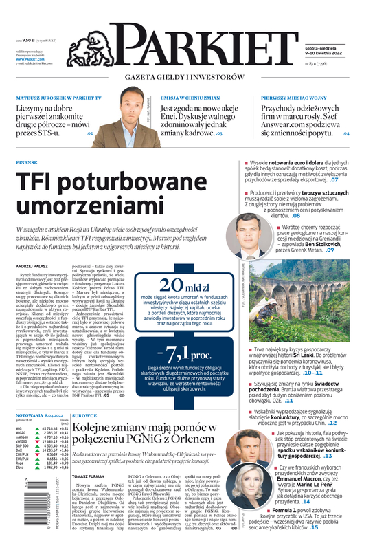 Największy w Polsce newsroom gospodarczy zbiera, analizuje i zgłębia dla Państwa najważniejsze informacje ze świata finansów. Codzienne wydanie „Parkietu”, sześć dni w tygodniu, to kilkadziesiąt artykułów o emitentach, instytucjach finansowych, gospodarce. To również opinie, felietony i wywiady z najważniejszymi ludźmi krajowej i globalnej finansjery.