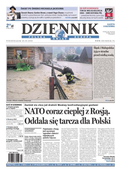 Koniec zimnej wojny między NATO a Rosją, rozpoczętej blisko rok temu po konflikcie w Gruzji; impas w negocjacjach między Polską a Stanami Zjednoczonymi o warunkach stacjonowania amerykańskich wojsk w naszym kraju; były prezes telewizji zarzuca PO, że zmarnowała szansę na zmiany w TVP i Polskim Radiu; wzbierająca fala powodziowa na Odrze dotrze dziś do Wrocławia; komisja trójstronna zdecyduje, czy zwiększyć świadczenia dla rodziców dzieci niepełnosprawnych.