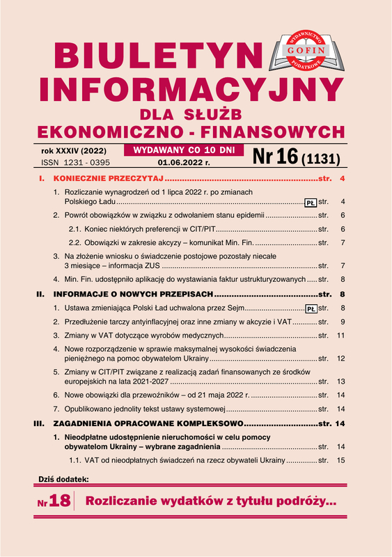 e-Kiosk.pl - Biuletyn Informacyjny dla Służb Ekonomiczno-Finansowych 16/2022