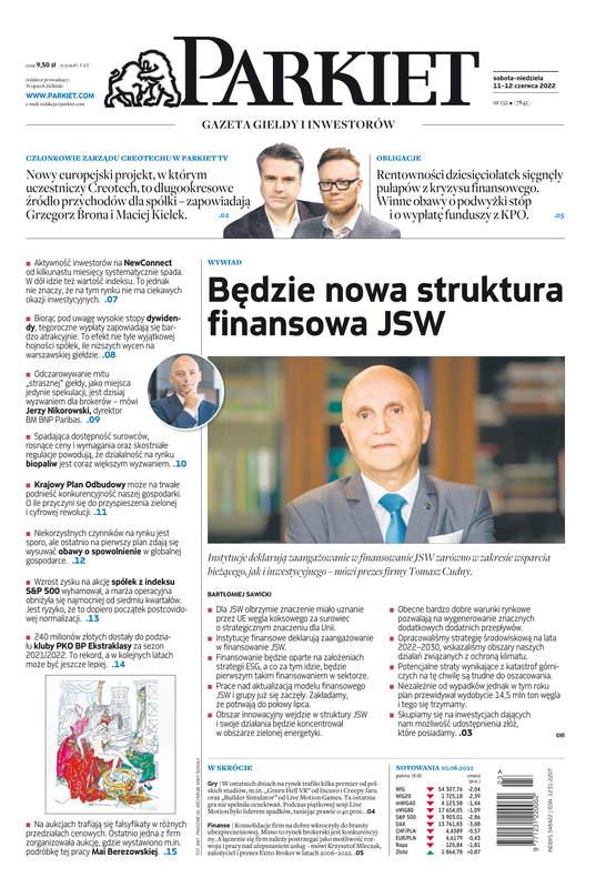 Największy w Polsce newsroom gospodarczy zbiera, analizuje i zgłębia dla Państwa najważniejsze informacje ze świata finansów. Codzienne wydanie „Parkietu”, sześć dni w tygodniu, to kilkadziesiąt artykułów o emitentach, instytucjach finansowych, gospodarce. To również opinie, felietony i wywiady z najważniejszymi ludźmi krajowej i globalnej finansjery.