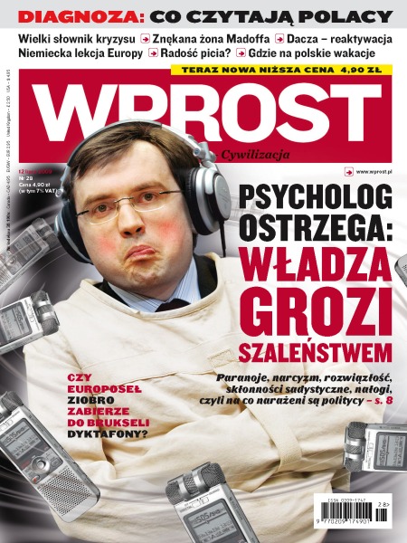 Władza deprawuje polityków: bywają oni sadystami, paranoikami, a nawet kanibalami; w ciągu dwóch lat liczba Polaków czytających książki zmniejszyła się o 12 procent; współczesny słownik najtrudniejszych i najmodniejszych pojęć ekonomicznych; o przekonującym i wygodnym kulcie umiarkowanego picia alkoholu; żona Bernarda Madoffa będzie wiodła gorsze życie niż jej skazany na 150 lat więzienia mąż; w Rosji wraca moda na dacze; wakacyjny przewodnik po niedrogich, ale ciekawych wczasach w Polsce; rozmowa z pianistą Rafałem Blechaczem.