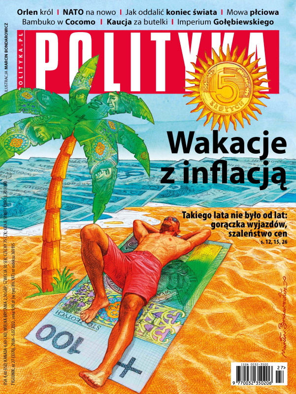 Wakacje z inflacją; naftowe imperium Obajtka; NATO zmienia cel; o tym, że nie da się dłużej żyć tak jak dawniej, z prof. Steve’em Keenem rozmawia Jacek Żakowski; jak zresetować się po stresie; tęcza dziś łączy; niepełnosprawni z Ukrainy - schody i przeszkody; o co proboszcz procesuje się z parafianami; szajka Cocomo - nieuczciwe kluby go-go; będzie kaucja za butelki i puszki; jak sanacja zmagała się z budżetem w Wielkim Kryzysie; rozmowa z Philippe’em Meyerem; cafe pod kostuchą, tuż za linią frontu; Kolumbia - takiego prezydenta jeszcze nie było; Borgen - serial polityczny; prof. Jolanta Szpyra-Kozłowska o feminatywach i językowej nierówności płci; biografia Hawkinga, portret prawdziwy; dwie historie Polski i Rosji; dzieje botanicznych piratów; zestaw 12 wakacyjnych lektur; rozmowa z laureatami NAGRODY ARCHITEKTONICZNEJ za projekt warszawskich Browarów Markiem Moskalem i Maciejem Rydzem; Alice Oseman - królowa komiksów dla młodych; Gołębiewski - odszedł hotelowy gigant.