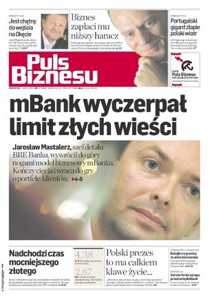Jarosław Mastalerz, szef detalu BRE Banku, wywrócił do góry nogami model biznesowy mBanku – kończy cięcia i wraca do gry o portfele klientów; Józef Wojciechowski, właściciel JW Construction, rozważa inwestycję w spółkę LOT Ground Service; średnie roczne wynagrodzenie prezesów największych spółek z GPW wynosi 2 mln zł; złoty rośnie w siłę – analitycy prognozują , że za miesiąc nasza waluta powinna mieć taką samą wartość.