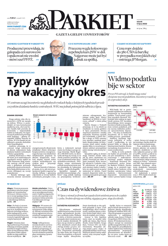 Największy w Polsce newsroom gospodarczy zbiera, analizuje i zgłębia dla Państwa najważniejsze informacje ze świata finansów. Codzienne wydanie „Parkietu”, sześć dni w tygodniu, to kilkadziesiąt artykułów o emitentach, instytucjach finansowych, gospodarce. To również opinie, felietony i wywiady z najważniejszymi ludźmi krajowej i globalnej finansjery.