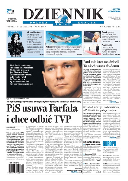 Magazyn: Aleksander Łukaszenka od 15 lat rządzi na Białorusi, Michael Jackson był pierwszym zwiastunem ery globalizacji, Azjaci i Afrykanie wydają miliardy na rozjaśnianie skóry, Grzegorz Napieralski o winie u prezydenta. Pozostałe dodatki: Europa, Warszawa i Podróże.