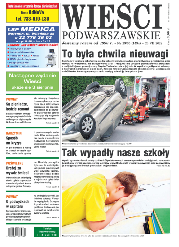 Wieści Podwarszawskie niezależny tygodnik lokalny, obszar powiat wołomiński, tematyka lokalna informacyjna, społeczno - kulturalna, sport, rozrywka, reklamy, ogłoszenia drobne. Ukazuje się w środy.