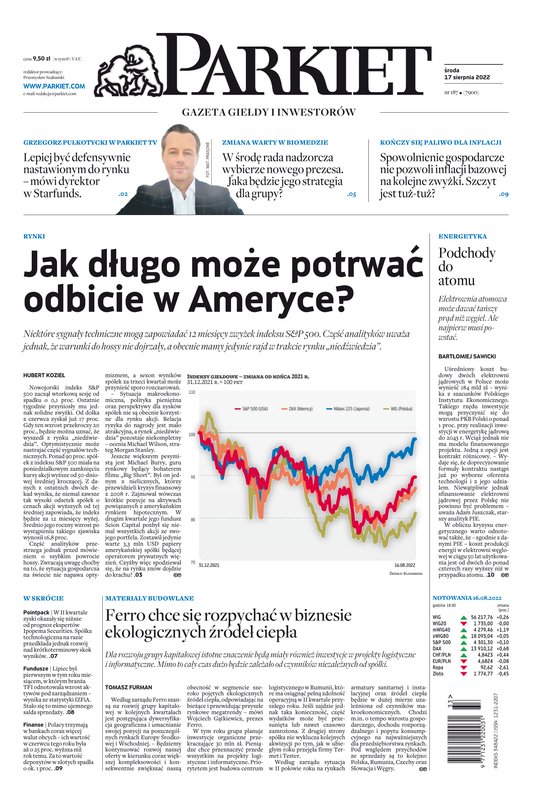 Największy w Polsce newsroom gospodarczy zbiera, analizuje i zgłębia dla Państwa najważniejsze informacje ze świata finansów. Codzienne wydanie „Parkietu”, sześć dni w tygodniu, to kilkadziesiąt artykułów o emitentach, instytucjach finansowych, gospodarce. To również opinie, felietony i wywiady z najważniejszymi ludźmi krajowej i globalnej finansjery.