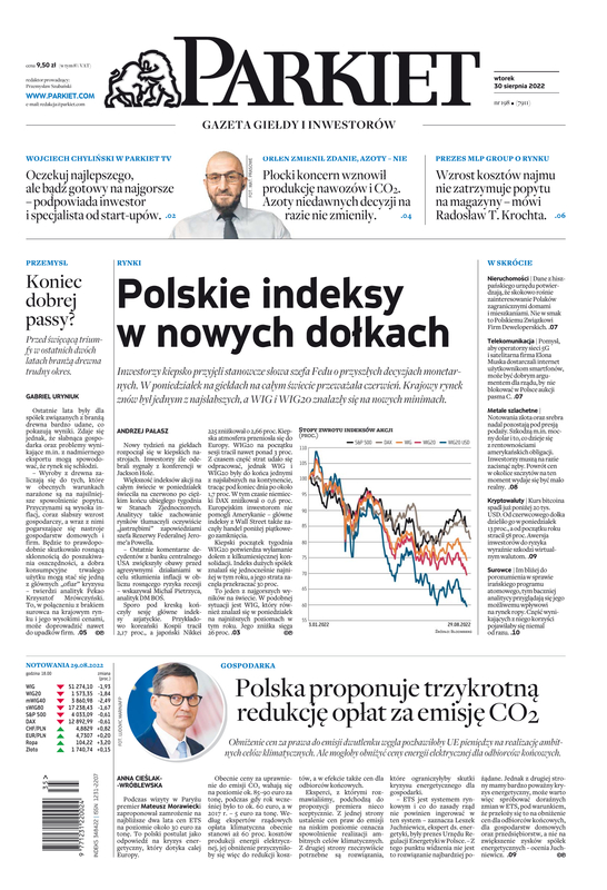 Największy w Polsce newsroom gospodarczy zbiera, analizuje i zgłębia dla Państwa najważniejsze informacje ze świata finansów. Codzienne wydanie „Parkietu”, sześć dni w tygodniu, to kilkadziesiąt artykułów o emitentach, instytucjach finansowych, gospodarce. To również opinie, felietony i wywiady z najważniejszymi ludźmi krajowej i globalnej finansjery.
