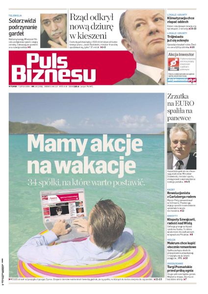 Lista trzydziestu czterech spółek, na które warto postawić w okresie wakacyjnym; w kasie państwa brakuje znacznie więcej, niż na początku szacował resort finansów; Szwajcaria pogrąża się w deficycie – światowy kryzys jest tym razem zbawienny dla polskich kredytobiorców; Makrum, spółka zajmująca się produkcją maszyn i urządzeń dla przemysłu, zaczyna realizować zapowiadaną strategię przejęć.