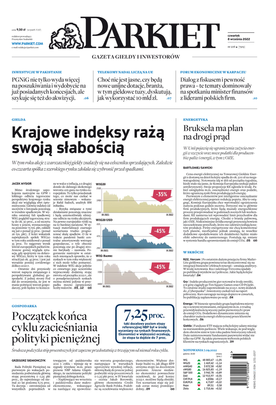 Największy w Polsce newsroom gospodarczy zbiera, analizuje i zgłębia dla Państwa najważniejsze informacje ze świata finansów. Codzienne wydanie „Parkietu”, sześć dni w tygodniu, to kilkadziesiąt artykułów o emitentach, instytucjach finansowych, gospodarce. To również opinie, felietony i wywiady z najważniejszymi ludźmi krajowej i globalnej finansjery.