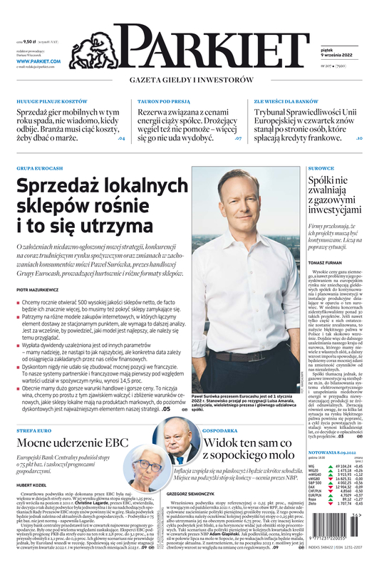 Największy w Polsce newsroom gospodarczy zbiera, analizuje i zgłębia dla Państwa najważniejsze informacje ze świata finansów. Codzienne wydanie „Parkietu”, sześć dni w tygodniu, to kilkadziesiąt artykułów o emitentach, instytucjach finansowych, gospodarce. To również opinie, felietony i wywiady z najważniejszymi ludźmi krajowej i globalnej finansjery.