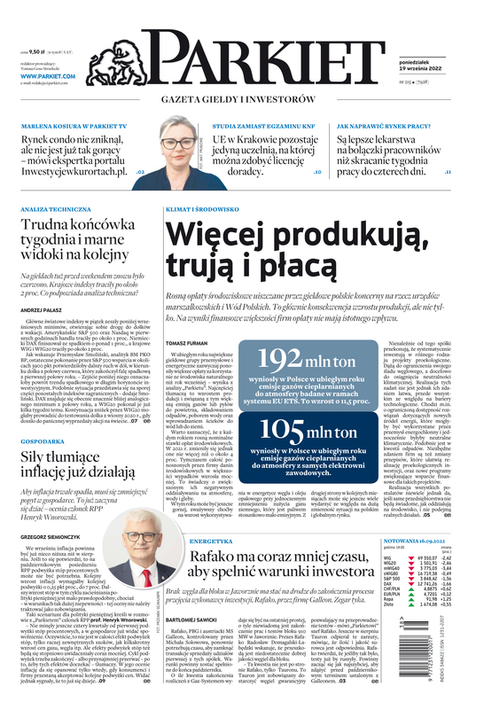 Największy w Polsce newsroom gospodarczy zbiera, analizuje i zgłębia dla Państwa najważniejsze informacje ze świata finansów. Codzienne wydanie „Parkietu”, sześć dni w tygodniu, to kilkadziesiąt artykułów o emitentach, instytucjach finansowych, gospodarce. To również opinie, felietony i wywiady z najważniejszymi ludźmi krajowej i globalnej finansjery.