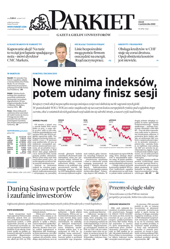 Największy w Polsce newsroom gospodarczy zbiera, analizuje i zgłębia dla Państwa najważniejsze informacje ze świata finansów. Codzienne wydanie „Parkietu”, sześć dni w tygodniu, to kilkadziesiąt artykułów o emitentach, instytucjach finansowych, gospodarce. To również opinie, felietony i wywiady z najważniejszymi ludźmi krajowej i globalnej finansjery.