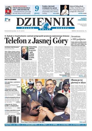 O. Ryzyk na Jasnej Górze promował swój najnowszy biznes; znów wojna między MSZ a Kancelarią Prezydenta; co się dzieje z szyfrantem Zielonką? dziś Lech Kaczyński spotyka się z twórcami w sprawie przyszłości ustawy medialnej; szefowa resortu pracy zapowiada budowę żłobków i ułatwienia w ich rejestracji; posiadacze kredytów hipotecznych w obcych walutach zapłacą raty niższe o kilkadziesiąt złotych; Polacy co roku wydają na fałszywe leki około 100 mln zł.; nowa talibska kontrofensywa ma zatrzymać ostatnie operacje Sojuszu; litewska prawica walczy z gejami. Dodatki: The Wall Street Journal, Warszawa, Praca.