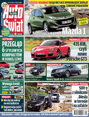 Auto Świat to najpopularniejszy w Polsce magazyn dla pasjonatów motoryzacji. Czytelnicy znajdą w tygodniku prezentacje najnowszych samochodów, opisy jazd testowych, a także raporty o sprawach ważnych dla kierowców np. zmianie przepisów ruchu drogowego. Każdy numer tygodnika zawiera testy samochodów, porównania wybranych modeli, porady dotyczące eksploatacji auta i odpowiedzi ekspertów na pytania czytelników.