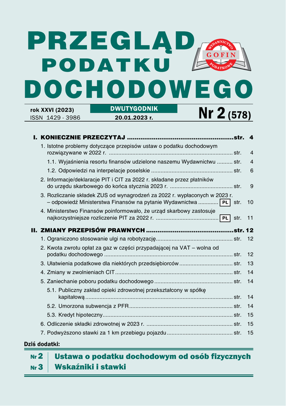 Przegląd Podatku Dochodowego - dwutygodnik zajmuje się tematyką podatku dochodowego (PIT i CIT). W każdym numerze na 68 stronach znajduje się mnóstwo porad dotyczących m.in. rozliczania przychodów i kosztów, obowiązków płatnika, amortyzacji, opodatkowania dochodów z zagranicy, uznawania wydatków za koszt uzyskania. Na bieżąco publikowane są informacje o zmianach w prawie, prezentowane jest aktualne orzecznictwo, interpretacje organów podatkowych oraz wyjaśnienia Ministerstwa Finansów.