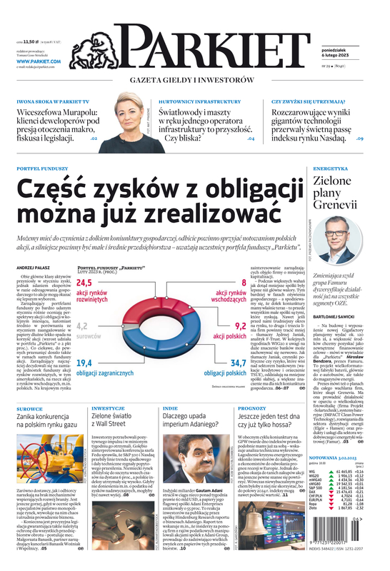 Największy w Polsce newsroom gospodarczy zbiera, analizuje i zgłębia dla Państwa najważniejsze informacje ze świata finansów. Codzienne wydanie „Parkietu”, sześć dni w tygodniu, to kilkadziesiąt artykułów o emitentach, instytucjach finansowych, gospodarce. To również opinie, felietony i wywiady z najważniejszymi ludźmi krajowej i globalnej finansjery.