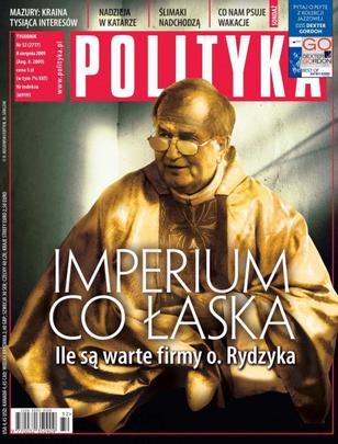 Ile jest warte imperium Tadeusza Rydzyka, sondaż „Polityki”: co nam psuje wakacje, rozpoczął się nowy etap kampanii wizerunkowej prezydenta RP, muzealna wersja Powstania Warszawskiego, rodzime i napływowe ślimaki sieją spustoszenie w uprawach, tego lata nastąpi wysyp literatury erotycznej dla kobiet, mazurscy samorządowcy cieszą się z wejścia ich regionu do finału konkursu na światowy cud przyrody i zaczynają się bać, co będzie, jeśli wygrają, rozpustnemu Berlusconiemu wszystkie wybryki uchodzą płazem.