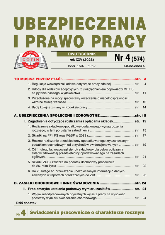 Ubezpieczenia i Prawo Pracy - dwutygodnik o tematyce kadrowo-płacowej, obejmuje zagadnienia z zakresu ubezpieczeń społecznych, ubezpieczenia zdrowotnego, świadczeń z ZUS oraz prawa pracy. W każdym numerze na 68 stronach publikuje tematy zawierające przykłady praktycznych rozwiązań, wzory wypełnionych druków, przydatne pisma, interpretacje organów resortowych i orzecznictwo. Prezentuje odpowiedzi na pytania Czytelników. Zawiera informacje o ważnych terminach oraz zmianach w prawie wraz z komentarzem redakcji.