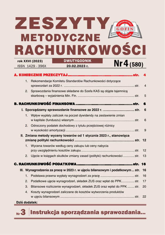 Zeszyty Metodyczne Rachunkowości - dwutygodnik szczegółowo wyjaśnia problemy związane ze stosowaniem ustawy o rachunkowości oraz Krajowych Standardów Rachunkowości. Prezentuje i omawia na przykładach liczbowych ewidencję zdarzeń gospodarczych, wycenę aktywów i pasywów, sporządzanie sprawozdań finansowych oraz stosowanie MSR. Wskazuje różnice między prawem bilansowym i podatkowym. Każdy numer zawiera 68 stron, w tym odpowiedzi na pytania Czytelników. Prezentowane rozwiązania ewidencyjne uwzględniają formę prawną danej jednostki i rodzaj działalności.