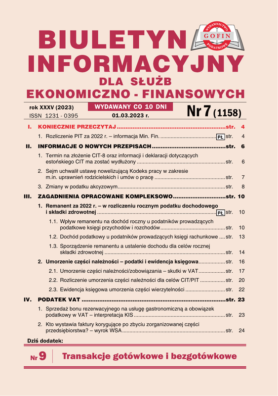 e-Kiosk.pl - Biuletyn Informacyjny dla Służb Ekonomiczno-Finansowych 7/2023