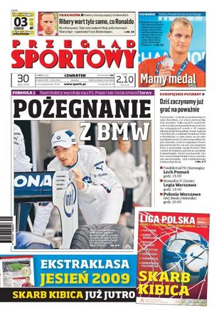 Paweł Korzeniowski w finale na 200 metrów delfinem wywalczył srebrny medal; wczoraj szefowie niemieckiego koncernu BMW ogłosili, że po zakończeniu sezonu rezygnują z prestiżowej serii wyścigów w Grand Prix Formuły 1 – jak przyszłość czeka Roberta Kubicę; wywiad z Bertrandem Le Guernem, prezesem Canal +; nadal trwa zamieszanie wokół transferu Ribery'ego do Madrytu; rozmowa z Pawłem Janasem, trenerem Widzewa Łódź.