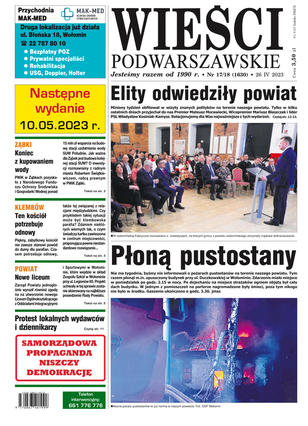 Wieści Podwarszawskie niezależny tygodnik lokalny, obszar powiat wołomiński, tematyka lokalna informacyjna, społeczno - kulturalna, sport, rozrywka, reklamy, ogłoszenia drobne. Ukazuje się w środy.