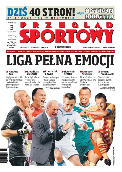 Rozpoczął się kolejny sezon rozgrywek polskiej Ekstraklasy – szczegółowa analiza spotkań pierwszej kolejki; wywiad z Jerzym Engelem, dyrektorem sportowym PZPN; Leo Beenhakker przy powołaniach dla młodych piłkarzy nie bierze pod uwagę zdania trenera kadry do lat 21; podczas żużlowego Grand Prix Łotwy Tomasz Gollob wywalczył drugie miejsce; rozmowa z Sebastianem Świderskim, kontuzjowanym przyjmującym reprezentacji Polski; ruszyła największa impreza sportowa w Polsce – Tour de Pologne.