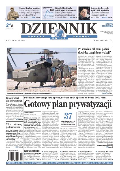 Polski dowódca zaginął w akcji w starciu z Talibami; czy Stefan Bandera powinien zostać uznany za bohatera; wg statystyk wynika, że lipiec był fatalny dla polskich producentów aut; ukazała się „Przygoda myśli”, zbiór wywiadów Łukasza Maciejewskiego z gwiazdami polskiego teatru i kina; z badań wynika, że Polska pnie się systematycznie w europejskim rankingu poziomu życia obywateli; brytyjskie sieci spożywcze doskonale radzą sobie z kryzysem; występ Madonny na Bemowskim lotnisku może obejrzeć nawet 100 tysięcy osób.