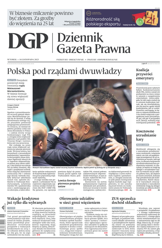 Gazetę wzbogacają praktyczne dodatki dla specjalistów, niedostępne w kioskach: Księgowość i Podatki, Rachunkowość i Audyt, Firma i Prawo, Samorząd i Administracja, Prawnik, Kadry i Płace, Ubezpieczenia i Świadczenia. NOWOŚĆ 2021 r. dodatki Biuro Rachunkowe i Księgowość Budżetowa (dostępne raz w miesiącu). Dodatkowo publikujemy wyjątkowo cenione przez Czytelników specjalne dodatki dotyczące najważniejszych zmian, nowych rozwiązań, na gorąco odpowiadamy na pytania. Piszemy o pracy zdalnej, o tarczach antykryzysowych, o nowych przepisach do walki z epidemią, o sposobach walki z zatorami płatniczymi i nowych obowiązkach pracodawców. Zapewniamy bezpieczeństwo w stosowaniu zmieniającego się prawa.