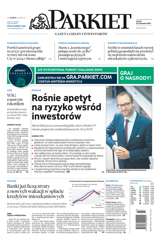 Największy w Polsce newsroom gospodarczy zbiera, analizuje i zgłębia dla Państwa najważniejsze informacje ze świata finansów. Codzienne wydanie „Parkietu”, sześć dni w tygodniu, to kilkadziesiąt artykułów o emitentach, instytucjach finansowych, gospodarce. To również opinie, felietony i wywiady z najważniejszymi ludźmi krajowej i globalnej finansjery.