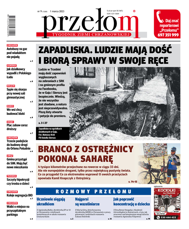 „Przełom” jest jedną z najlepszych i największych gazet lokalnych w Polsce. Powstał 16 września 1990 r. i ukazuje się nieprzerwanie do dziś. Zasięgiem obejmuje obecnie pięć gmin powiatu chrzanowskiego: Alwernię, Babice, Chrzanów, Libiąż i Trzebinię oraz gminę Krzeszowice w powiecie krakowskim i gminę Chełmek w powiecie oświęcimskim. W 1994 r. zdobył I nagrodę IDEE (Fundacji na Rzecz Demokracji w Europie Wschodniej, a w 2000 r. tytuł gazety 10-lecia sygnowany przez premiera rządu RP i ministra kultury. Tytuł dwukrotnie nagradzany przez Narodowy Fundusz Ochrony Środowiska, w 2000 r. zdobył I nagrodę w konkursie dla gazet mających największy wpływ na kształtowanie świadomości ekologicznej.