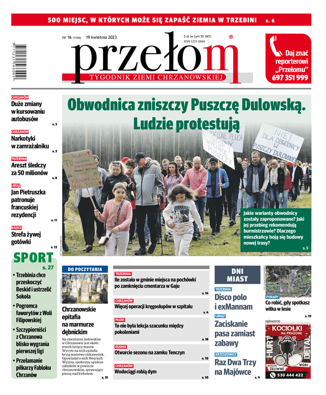 „Przełom” jest jedną z najlepszych i największych gazet lokalnych w Polsce. Powstał 16 września 1990 r. i ukazuje się nieprzerwanie do dziś. Zasięgiem obejmuje obecnie pięć gmin powiatu chrzanowskiego: Alwernię, Babice, Chrzanów, Libiąż i Trzebinię oraz gminę Krzeszowice w powiecie krakowskim i gminę Chełmek w powiecie oświęcimskim. W 1994 r. zdobył I nagrodę IDEE (Fundacji na Rzecz Demokracji w Europie Wschodniej, a w 2000 r. tytuł gazety 10-lecia sygnowany przez premiera rządu RP i ministra kultury. Tytuł dwukrotnie nagradzany przez Narodowy Fundusz Ochrony Środowiska, w 2000 r. zdobył I nagrodę w konkursie dla gazet mających największy wpływ na kształtowanie świadomości ekologicznej.