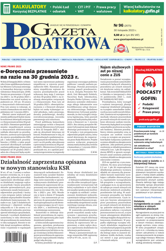 e-Kiosk.pl - Gazeta Podatkowa 30.11.2023 (96)