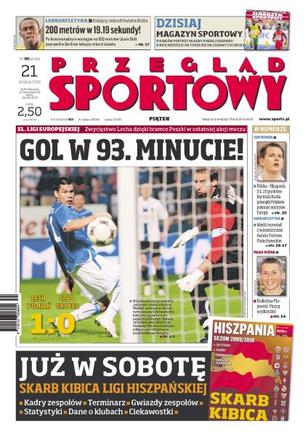 Sławomir Peszko zapewnił zwycięstwo Lechowi Poznań w 93 minucie; Maciej Małkowski miał być gwiazdą, a wylądował na ławce już po dwóch kolejkach; Węgrzy Ligę Mistrzów mają na wyciągnięcie ręki, piłkarze Wisły mogą sobie pluć w brodę; wywiad z wicemistrzem olimpijskim i wicemistrzem świata w rzucie dyskiem Piotrem Małachowskim; Robert Kubica pierwszy raz mówi o odejściu koncernu, o którym dowiedział się z internetu; polska reprezentacja siatkarzy pokonała Hiszpanię w pierwszym meczu Memoriału Wagnera; walka Adamka z Gołota to wstęp do kariery w wadze ciężkiej.