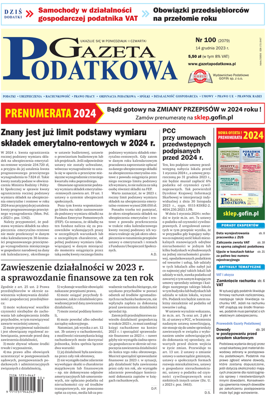 e-Kiosk.pl - Gazeta Podatkowa 14.12.2023 (100)
