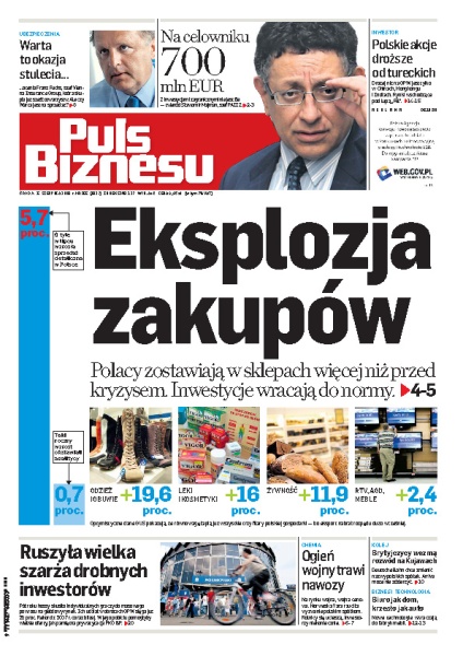 Widać już pierwsze przejawy końca kryzysu finansowego – Polacy wydają w sklepach coraz więcej pieniędzy; nowe projekty pilotowane przez PAIIZ dadzą więcej miejsc pracy niż w 2008 roku; deweloperzy sprzedają coraz więcej mieszkań; Arriva albo DB - tak będzie się nazywała pierwsza w Polsce kolej prywatna; udział inwestorów indywidualnych w obrotach akcjami zbliża się do rekordu z hossy 2007 roku.