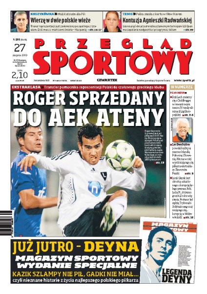 Dziś Lech Poznań walczyć będzie o awans do fazy grupowej Ligi Europejskiej – czy uda mu się obronić zaliczkę z wygranego 1:0 pierwszego spotkania z Brugge we Wronkach; Leo Beenhakker ogłosił 23-osobową kadrę na wrześniowe mecze eliminacyjne z Irlandią Północną i Słowenią; wywiad z Pawłem Brożkiem, napastnikiem Wisły Kraków; przygotowania Andrzeja Gołoty do październikowej walki z Tomaszem Adamkiem; rozmowa z Bartoszem Kurkiem, podstawowym przyjmującym siatkarskiej reprezentacji Polski.