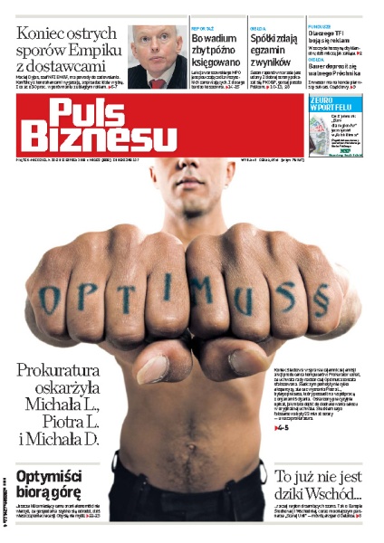 Zdaniem prokuratury, na wydarzeniach z 2006 roku spółka Optimus straciła 22 mln zł; NFI Empik Media & Fashion ogłosi wkrótce wyniki finansowe za II kwartał tego roku – wiadomo jednak, że mimo kryzysu sprzedaż wzrosła o 30 %; eksperci Deloitte uważają, że Europa Środkowa i Wschodnia to rynek wielkich możliwość dla państw zachodnich; coraz gorzej wygląda sytuacja finansowa polskiej policji.