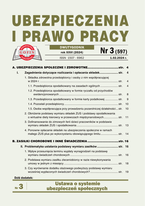 Ubezpieczenia i Prawo Pracy - dwutygodnik o tematyce kadrowo-płacowej, obejmuje zagadnienia z zakresu ubezpieczeń społecznych, ubezpieczenia zdrowotnego, świadczeń z ZUS oraz prawa pracy. W każdym numerze na 68 stronach publikuje tematy zawierające przykłady praktycznych rozwiązań, wzory wypełnionych druków, przydatne pisma, interpretacje organów resortowych i orzecznictwo. Prezentuje odpowiedzi na pytania Czytelników. Zawiera informacje o ważnych terminach oraz zmianach w prawie wraz z komentarzem redakcji.