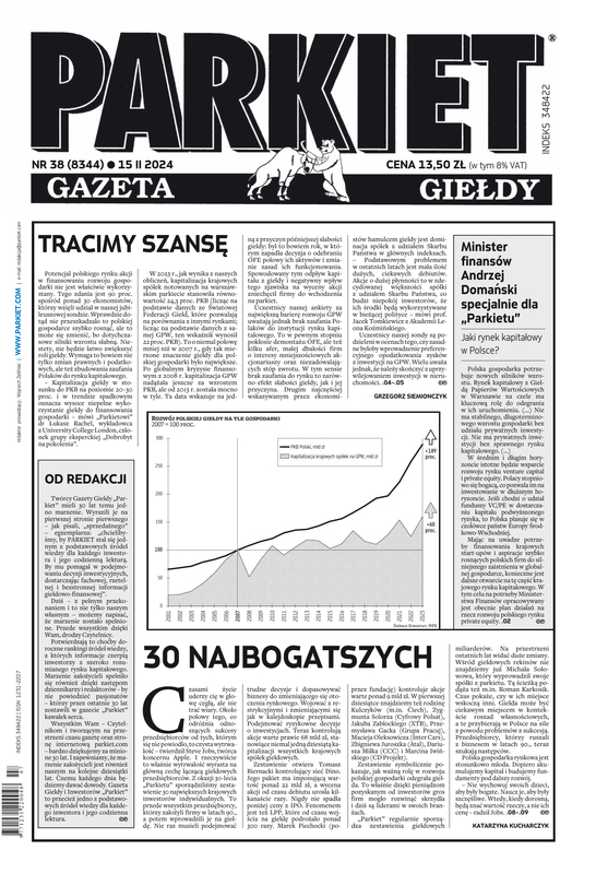 Największy w Polsce newsroom gospodarczy zbiera, analizuje i zgłębia dla Państwa najważniejsze informacje ze świata finansów. Codzienne wydanie „Parkietu”, sześć dni w tygodniu, to kilkadziesiąt artykułów o emitentach, instytucjach finansowych, gospodarce. To również opinie, felietony i wywiady z najważniejszymi ludźmi krajowej i globalnej finansjery.