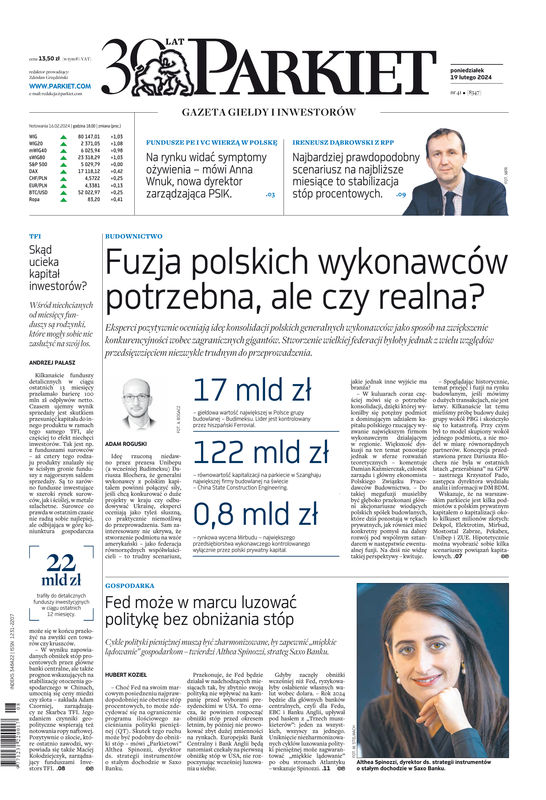 Największy w Polsce newsroom gospodarczy zbiera, analizuje i zgłębia dla Państwa najważniejsze informacje ze świata finansów. Codzienne wydanie „Parkietu”, sześć dni w tygodniu, to kilkadziesiąt artykułów o emitentach, instytucjach finansowych, gospodarce. To również opinie, felietony i wywiady z najważniejszymi ludźmi krajowej i globalnej finansjery.