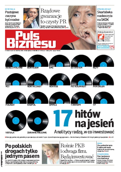 BGK pożyczy aż 1 mld euro na przebudowę krajowych tras; urzędy kontroli skarbowej bardzo wnikliwie prześwietlają ponad połowę Spółdzielczych Kas Oszczędnościowo-Kredytowych; po zaskakująco dobrych danych o PKB przedsiębiorcy coraz odważniej mówią o inwestowaniu; czy powracający z zachodu emigranci mogą zaszkodzić rozwojowi polskiej gospodarki; francuskim politykom nie podoba się pomysł prezydenta dotyczący ograniczenie premii bankowcom.