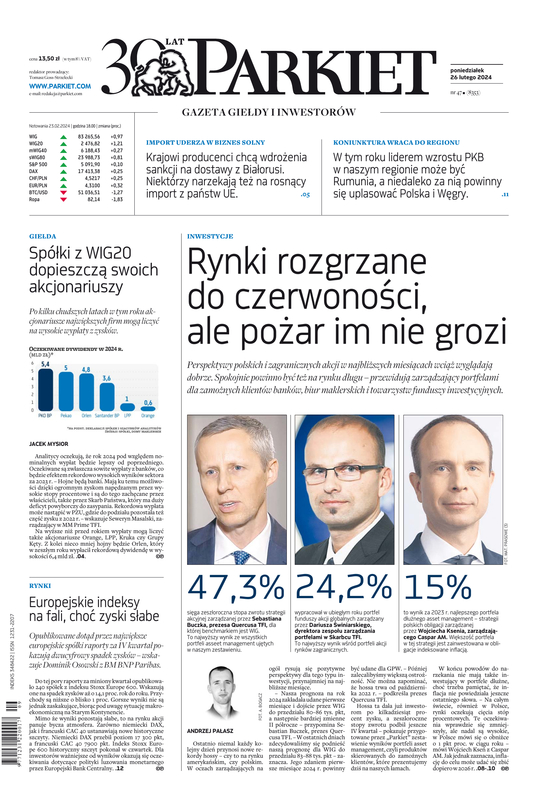 Największy w Polsce newsroom gospodarczy zbiera, analizuje i zgłębia dla Państwa najważniejsze informacje ze świata finansów. Codzienne wydanie „Parkietu”, sześć dni w tygodniu, to kilkadziesiąt artykułów o emitentach, instytucjach finansowych, gospodarce. To również opinie, felietony i wywiady z najważniejszymi ludźmi krajowej i globalnej finansjery.